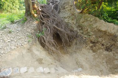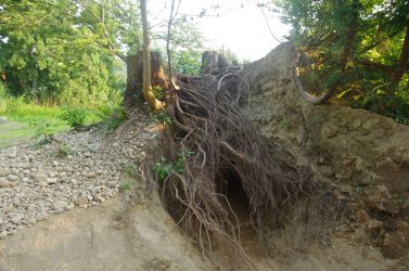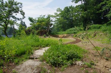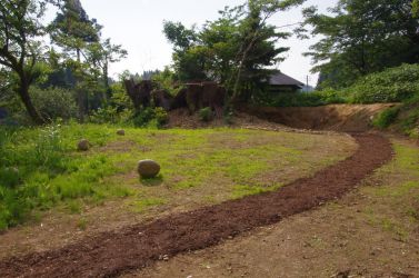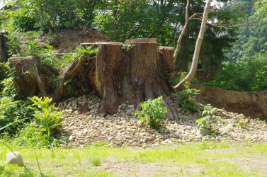 The artist digs into the ground around a withered tree growing in a place with a panoramic view and reveals its roots. Trees do not stand alone but in relation with all other existences, such as the surrounding trees, grass, soil, the sun, and the sky.